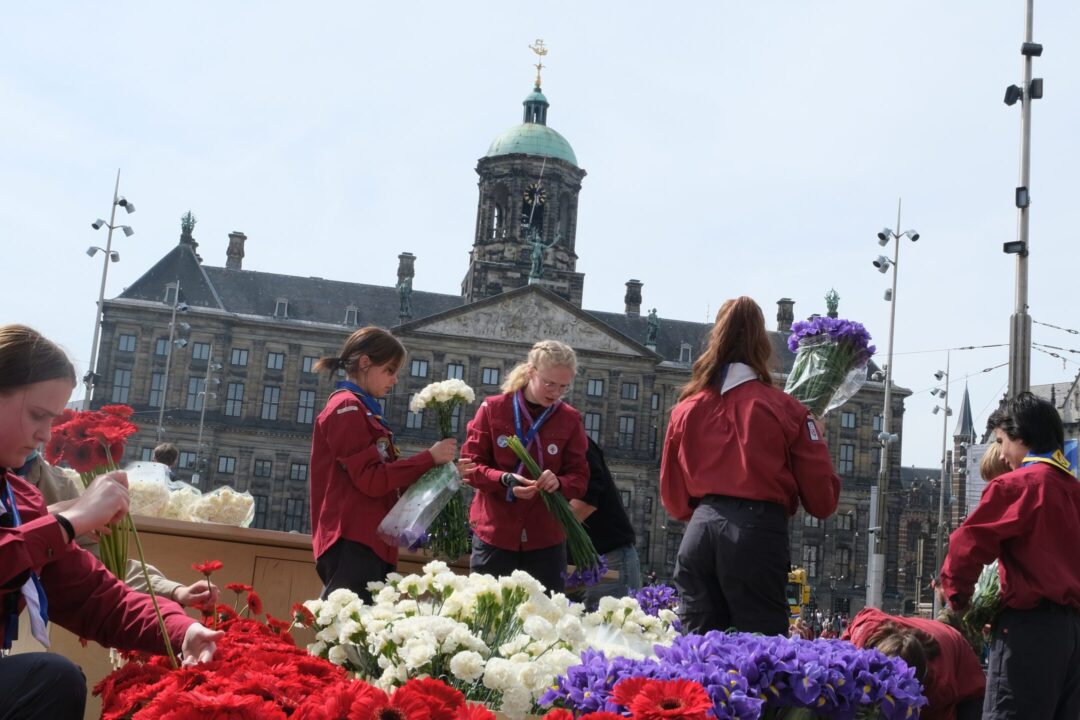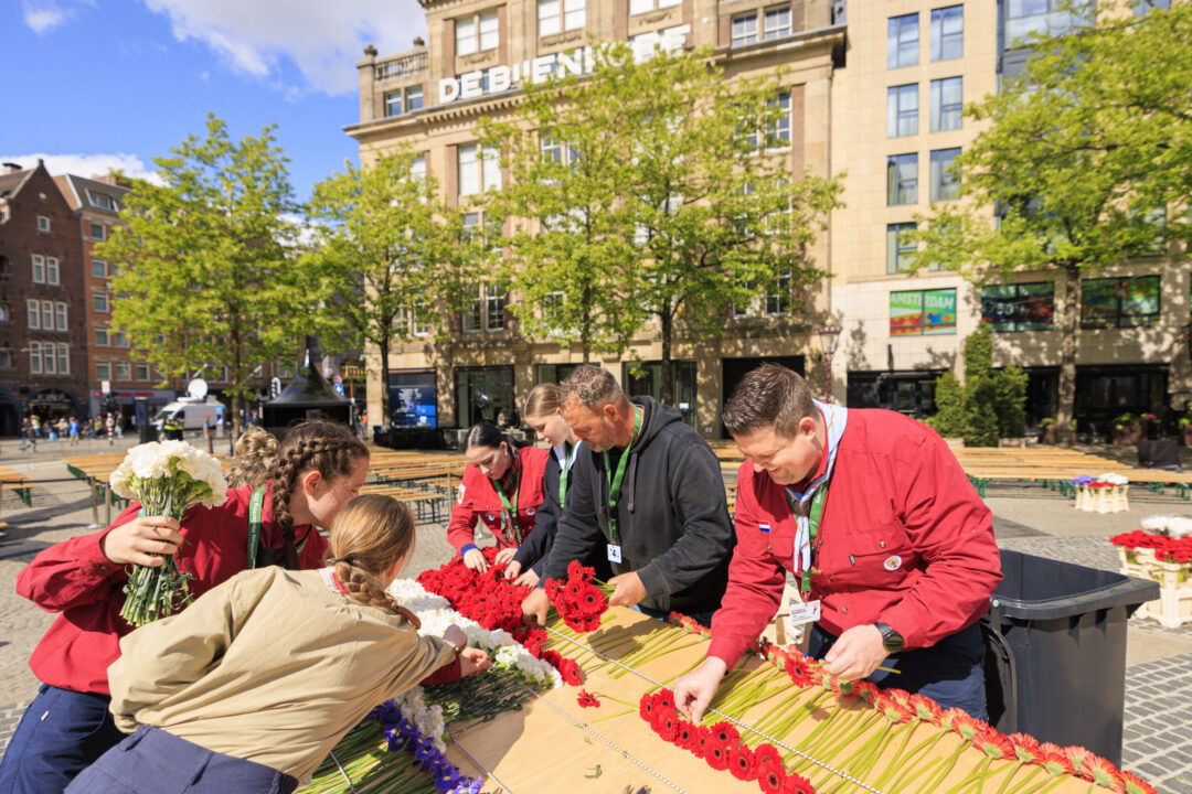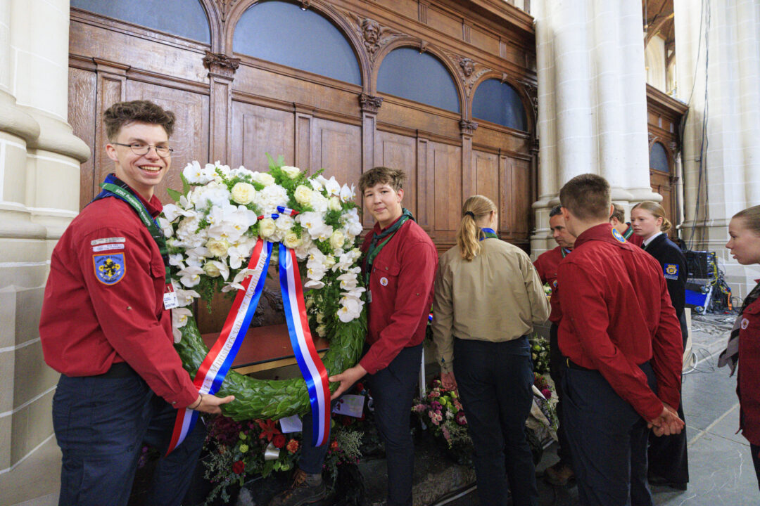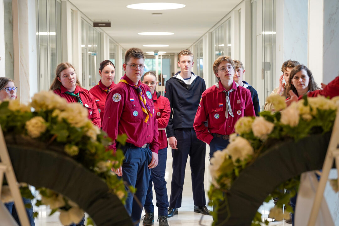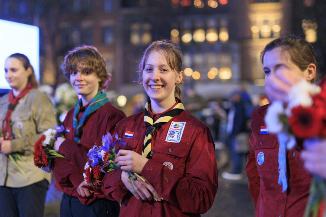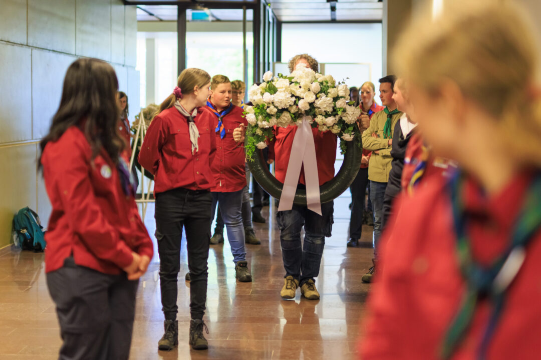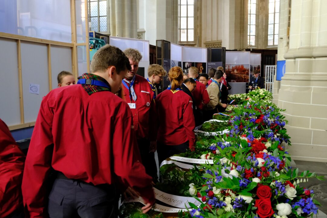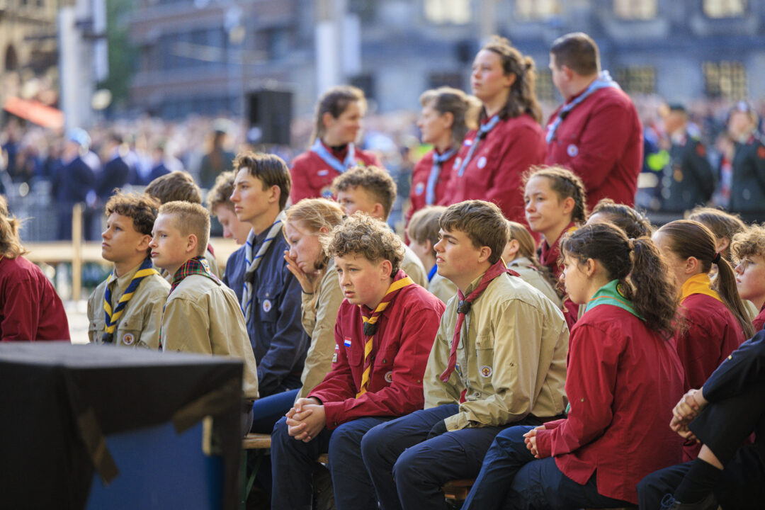 Ook dit jaar is de Nationale Herdenking op de Dam zonder publiek en dus is de inzet van scouts en zeekadetten beperkt. De scouts Cato (14) en Ana (16) Robben uit Leiden en de zeekadetten Mark (14) en Anne (16) den Dunnen uit Urk plaatsen de kransen namens de diverse organisaties. Ze hebben zich op hun taak voorbereid door enkele opdrachten met thema’s rondom de Tweede Wereldoorlog, vrijheid en herdenken uit te voeren. Daardoor zijn ze zich bewust van het belang van de herdenking en weten ze voor welke organisaties ze de kransen leggen. Op 4 mei overdag oefenen ze op de Dam de protocollen.