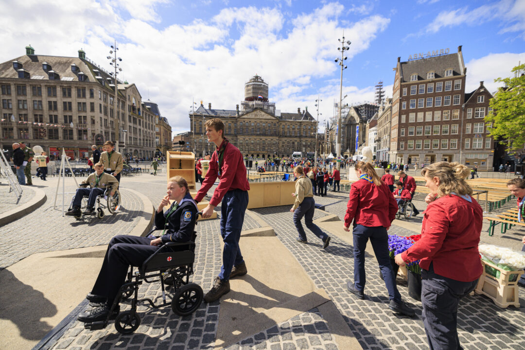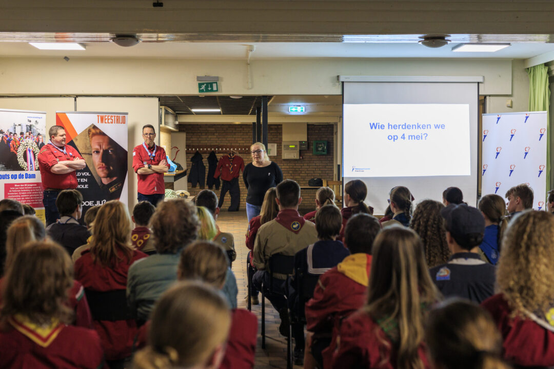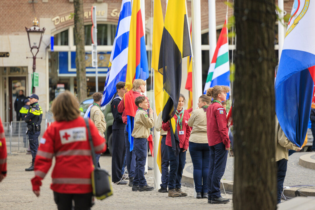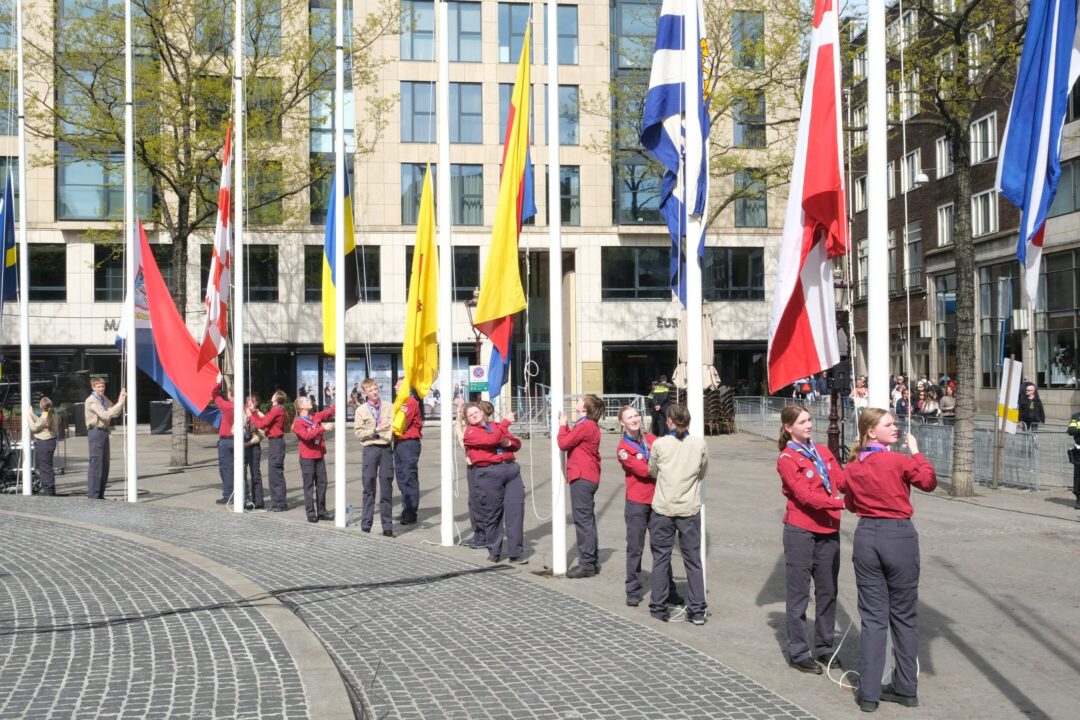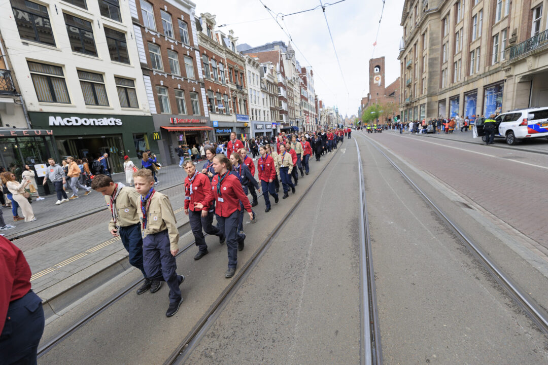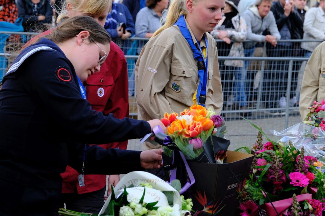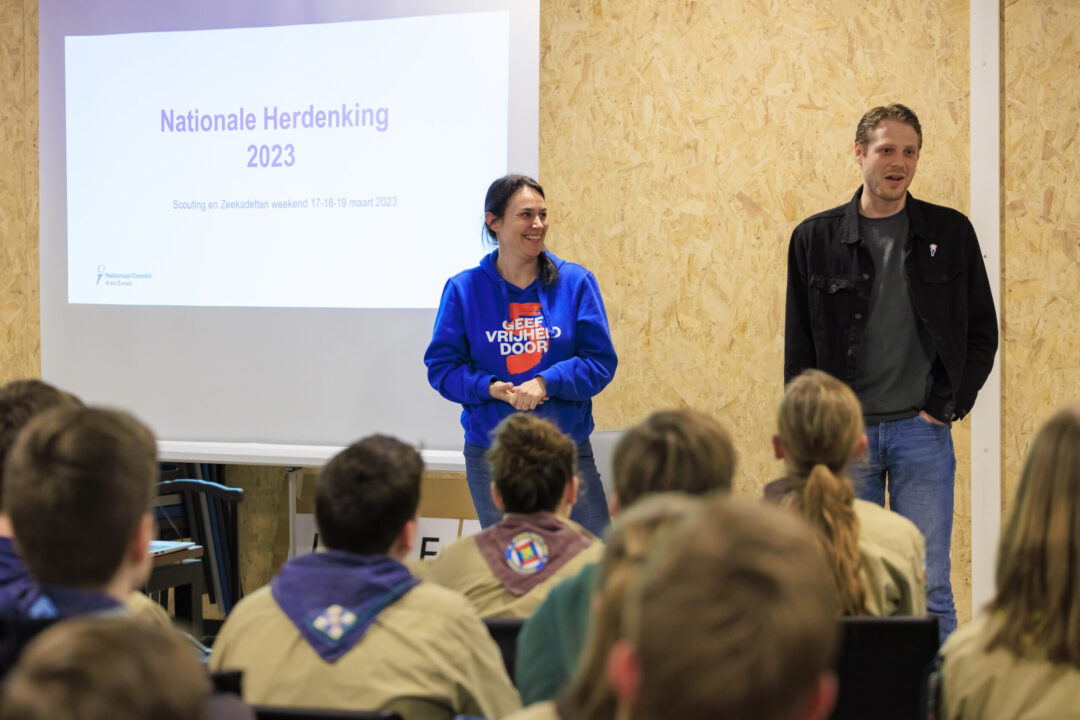 Ook dit jaar is de Nationale Herdenking op de Dam zonder publiek en dus is de inzet van scouts en zeekadetten beperkt. De scouts Cato (14) en Ana (16) Robben uit Leiden en de zeekadetten Mark (14) en Anne (16) den Dunnen uit Urk plaatsen de kransen namens de diverse organisaties. Ze hebben zich op hun taak voorbereid door enkele opdrachten met thema’s rondom de Tweede Wereldoorlog, vrijheid en herdenken uit te voeren. Daardoor zijn ze zich bewust van het belang van de herdenking en weten ze voor welke organisaties ze de kransen leggen. Op 4 mei overdag oefenen ze op de Dam de protocollen.