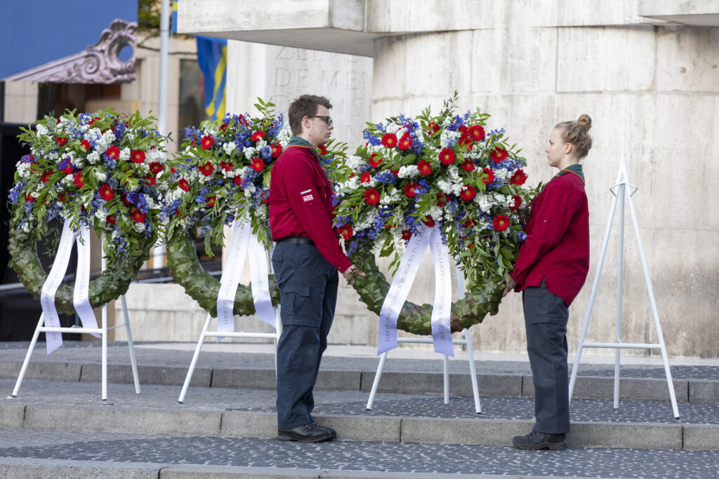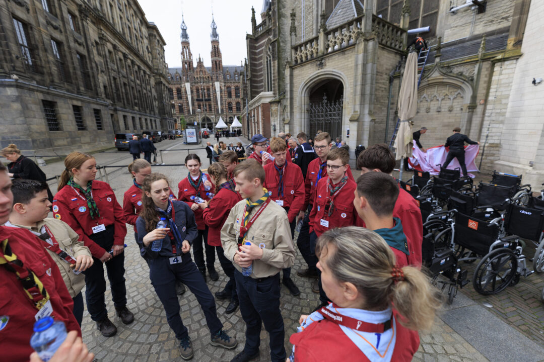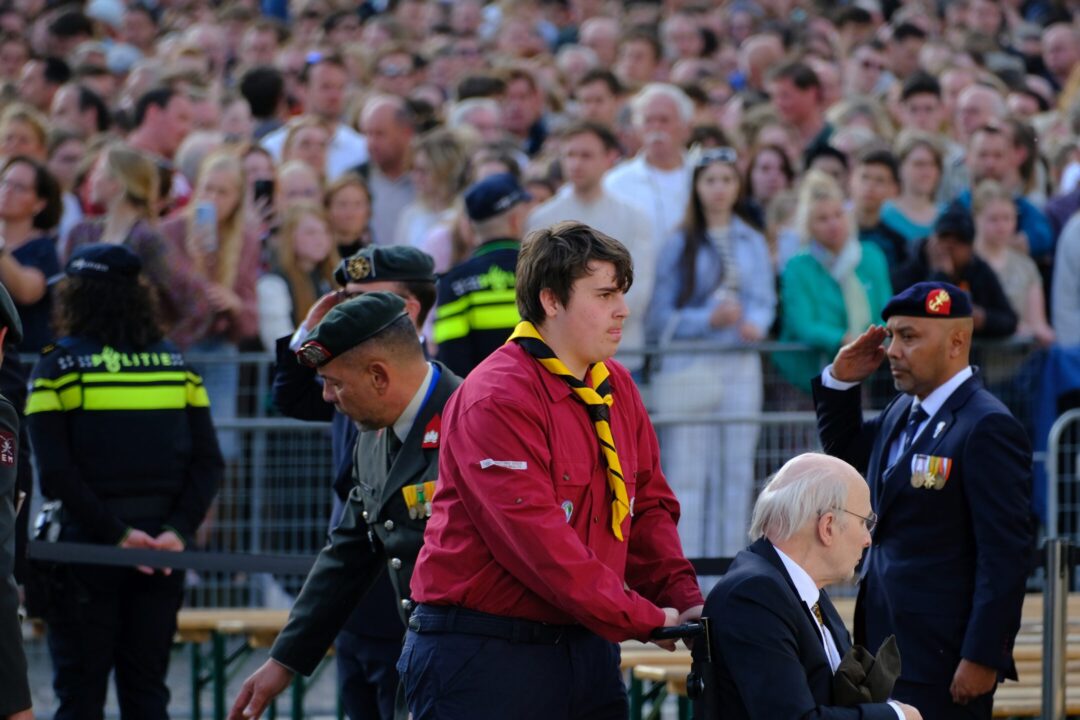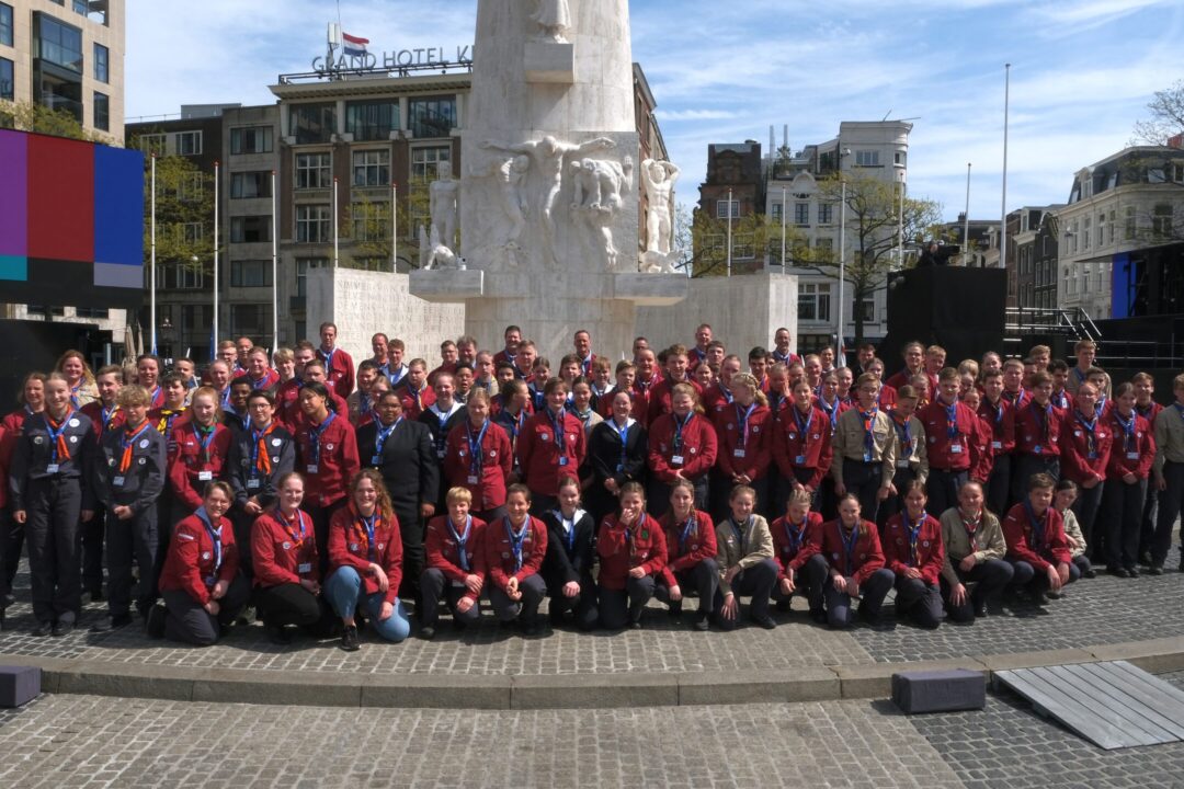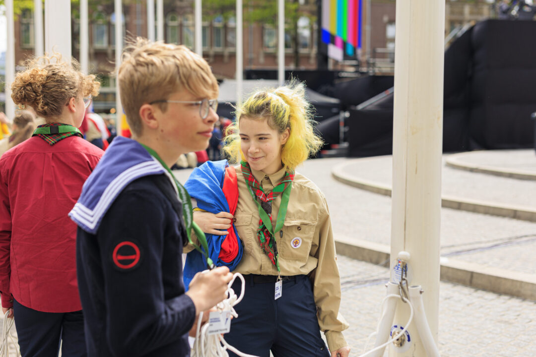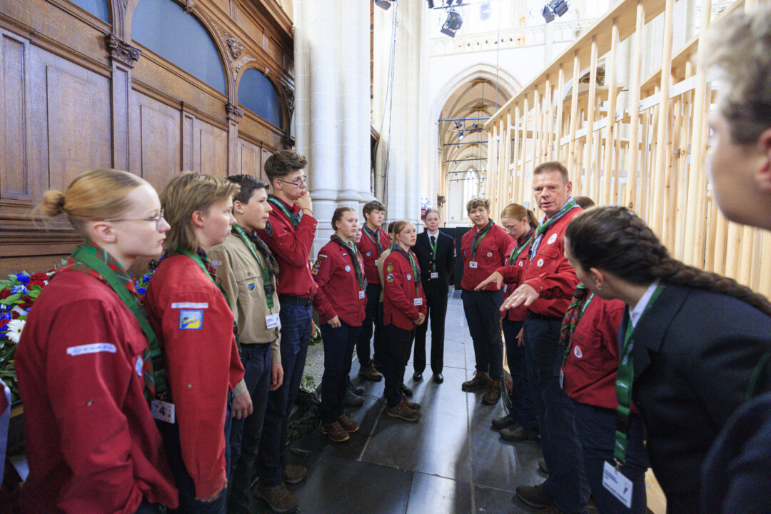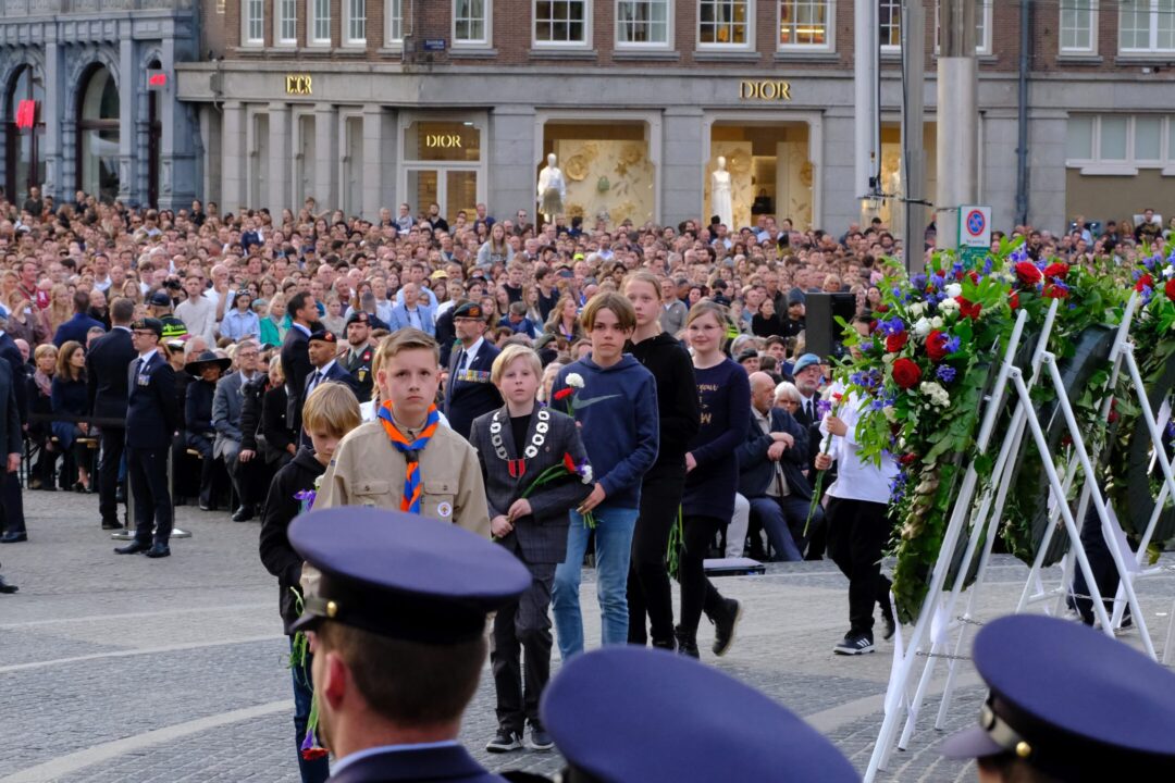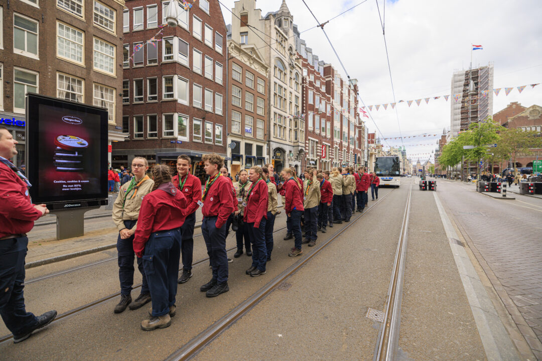 Ook dit jaar is de Nationale Herdenking op de Dam zonder publiek en dus is de inzet van scouts en zeekadetten beperkt. De scouts Cato (14) en Ana (16) Robben uit Leiden en de zeekadetten Mark (14) en Anne (16) den Dunnen uit Urk plaatsen de kransen namens de diverse organisaties. Ze hebben zich op hun taak voorbereid door enkele opdrachten met thema’s rondom de Tweede Wereldoorlog, vrijheid en herdenken uit te voeren. Daardoor zijn ze zich bewust van het belang van de herdenking en weten ze voor welke organisaties ze de kransen leggen. Op 4 mei overdag oefenen ze op de Dam de protocollen.