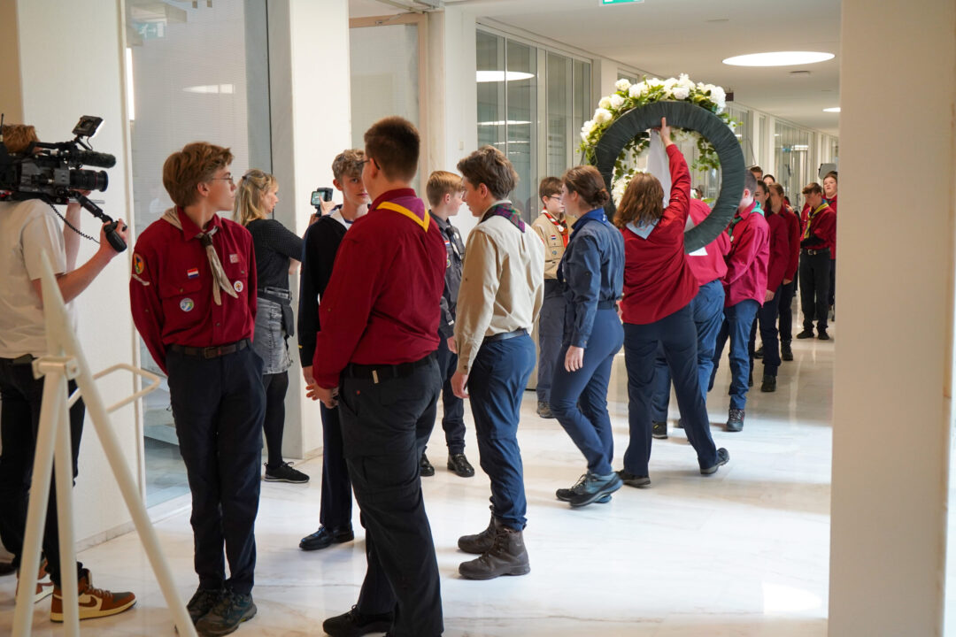 In de opzet van de Nationale Herdenking 2020 werd wel een beroep gedaan op twee scouts die volgens de corona-regels uit één gezin kwamen. Kinke en Sybe Penninga uit Meppel hadden de eer om de kransen aan te mogen reiken.